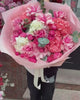Вишукане поєднання рожевих і білих гортензій, французьких та кущових троянд з легким акцентом евкаліпта створює повітряну об’ємну композицію з м’яким ароматом і акуратною фактурою пелюсток. Букет виглядає елегантно як у реальності, так і на фото.