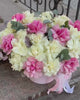 Ніжна композиція з французьких білих і рожевих троянд у стильній капелюшній коробці. Пудрові відтінки створюють витончений образ, що однаково ефектно виглядає наживо та на фото. Готово до дарування — ваза не потрібна.
