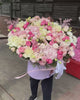 Обʼємна гортензія створює мʼяку основу, яку розкривають текстурні піоновидні троянди та ніжні кущові троянди. Акценти структури додає хризантема. Композиція зібрана у коробці-хетбоксі зі зволоженою основою — свіжість зберігається без вази.