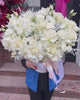 Бездоганно чиста композиція з білих французьких троянд у подарунковій коробці з флористичним оазисом. Аристократична лаконічність білого кольору робить цей бокс доречним як для урочистих нагод, так і для щирих, делікатних привітань.